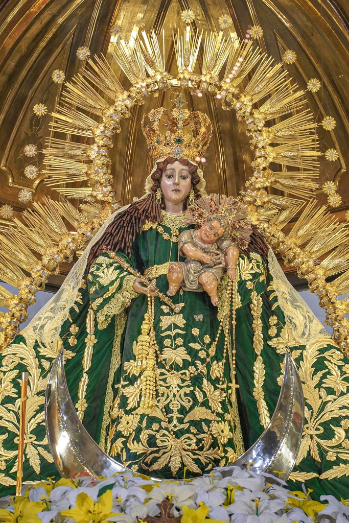 ¡Oh, Madre y clementísima Virgen del Rosario! Tú que plantaste en la Iglesia, por medio de tu privilegiado hijo Domingo, el místico árbol del Santo Rosario, haz que abracemos todos tu santa devoción y gocemos su verdadero espíritu; de suerte que aquellas místicas rosas sean en nuestros labios y corazón, por los pecadores medicina y por los justos aumento de gracia.